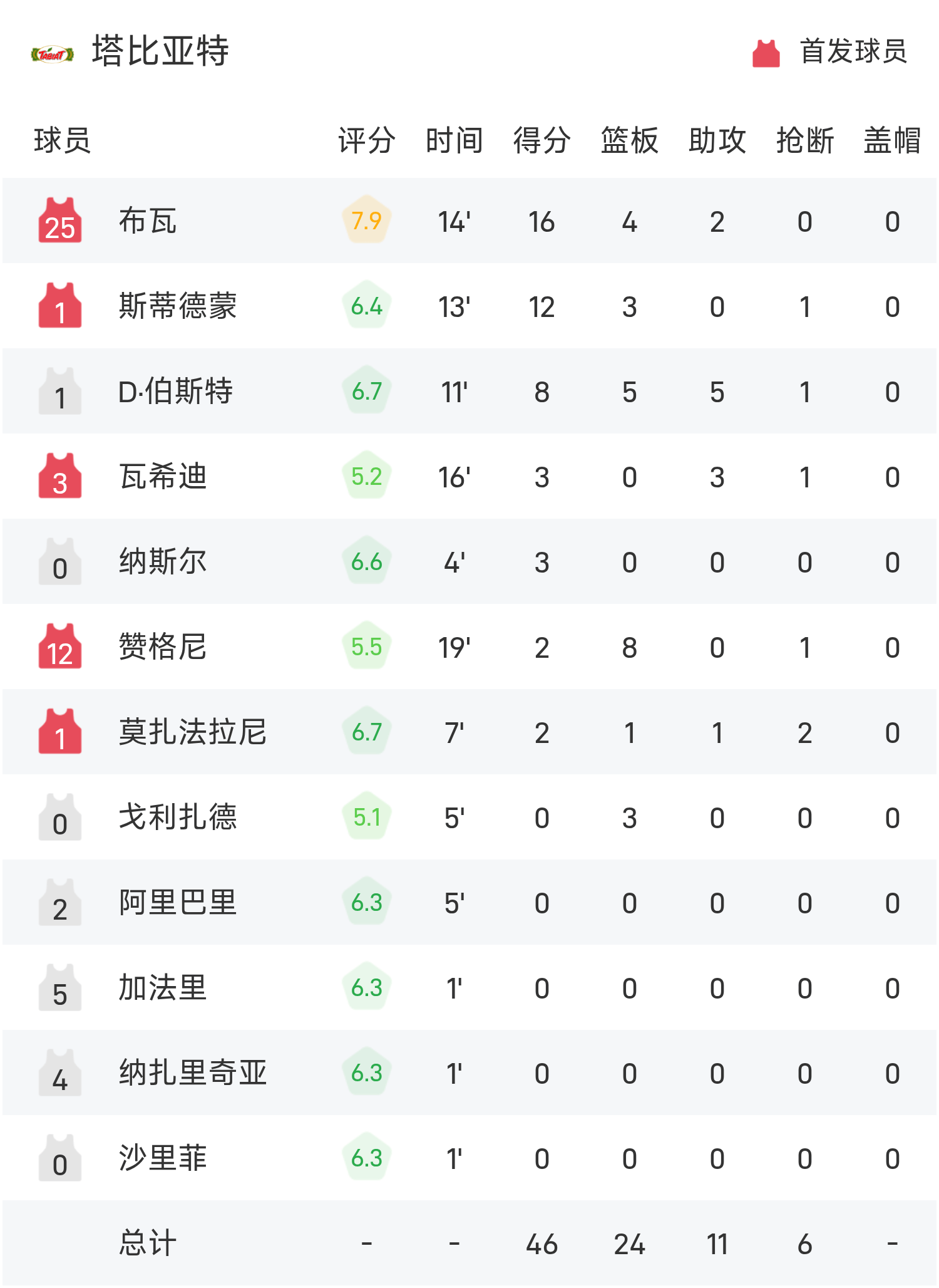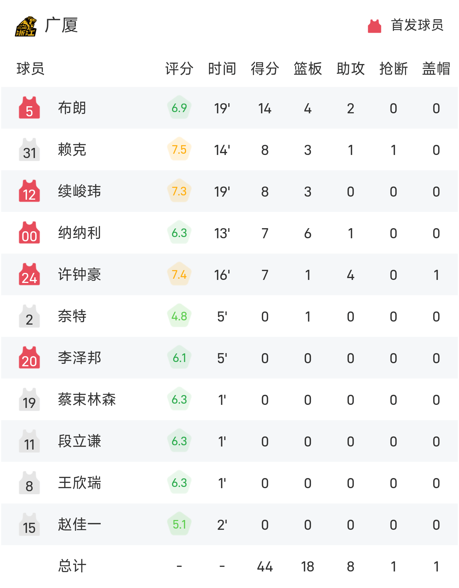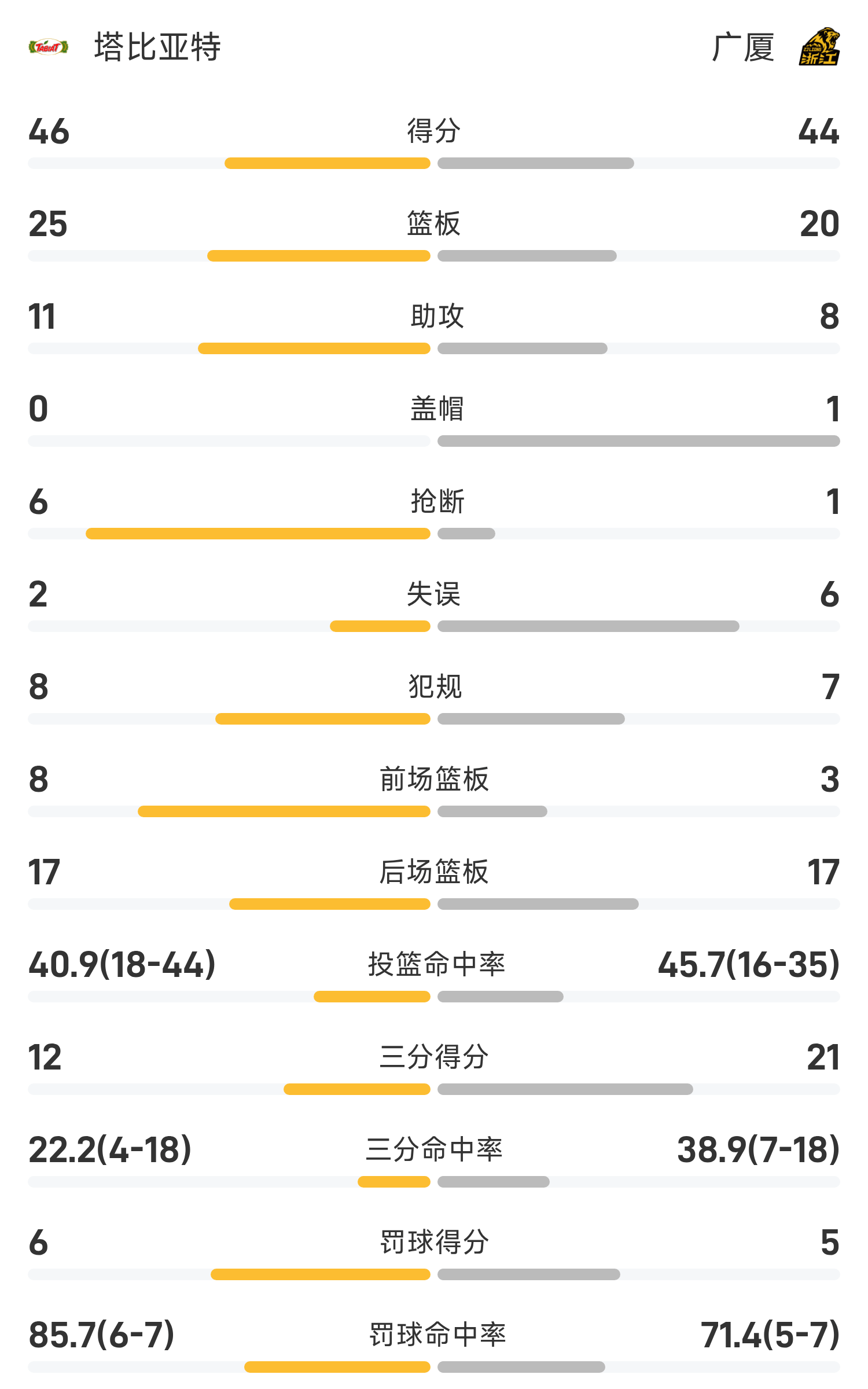 06月08日讯 25赛季亚冠联小组赛,广厦对阵塔比亚特。广厦外援巴里·布朗手感回暖,在广厦第二节行将崩盘之际练练取分,半场战罢广厦44-48落后塔比亚特。